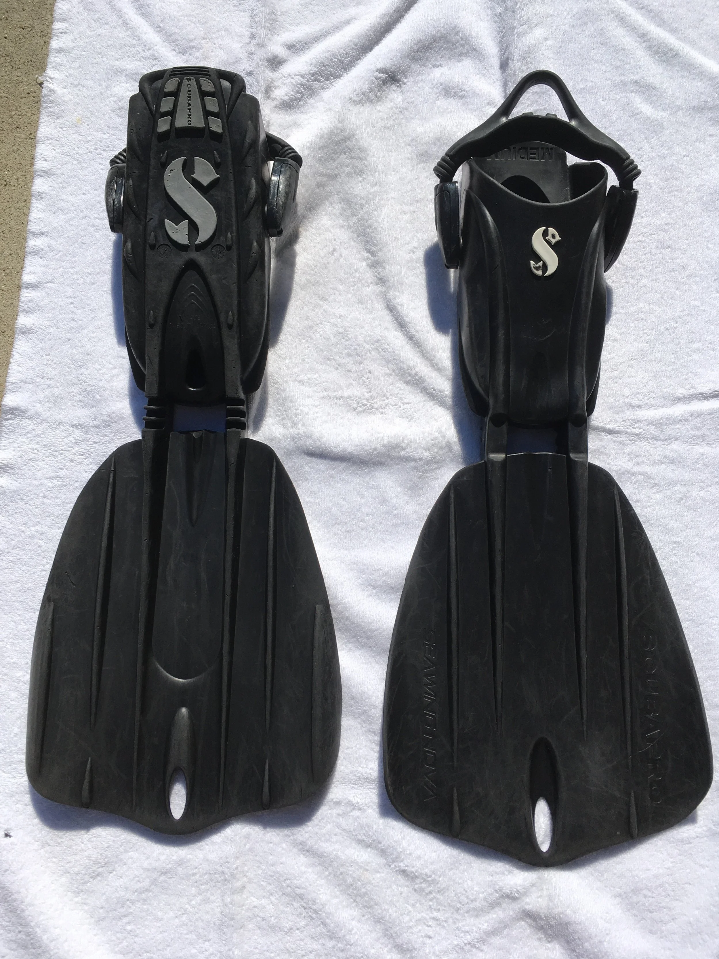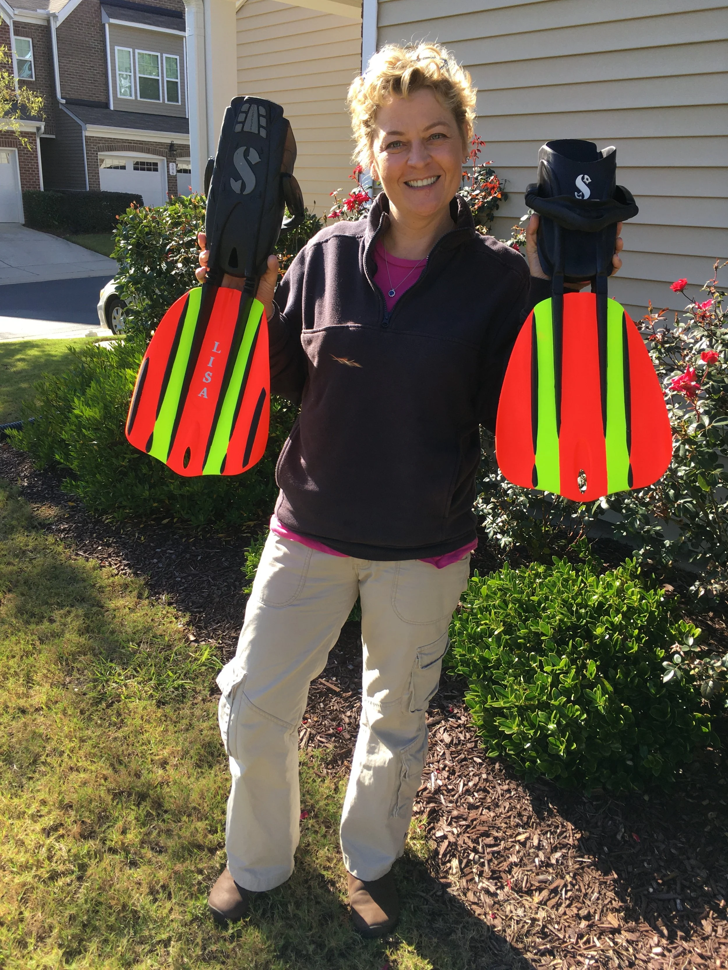 A: Privately, but not commercially. I custom-painted my partner, Lisa’s, dive fins so that her students could see her better in murky water. When you watch my videos, you’ll know it’s Lisa by her Safety Orange and Florescent Yellow striped fins!